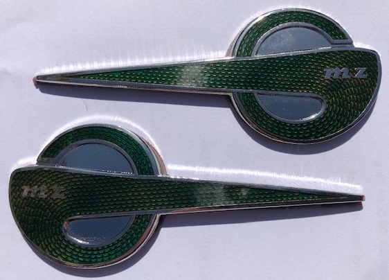 Comet Badge set for headlamp – ES125/1, ES150/1, ES175/2, ES250/2 Manufactured in the UK for the MZ Shop Ltd. These badges are of the highest quality. Manufactured from high quality stamped copper, chromed with a hard vitreous enamel infill with a 3M adhesive backing